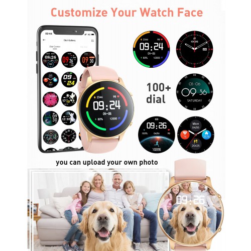 • гЂђCustomize Your Watch FaceгЂ‘ Different occasions require different styles of dial collocation. The smart watches for women contains 100+ dials in the APP, and you can upload your own photo to make your smartwatch more personal. 1.28'' full-color touch screen covered with an aluminum alloy frame, so elegant and comfortable to wear.
